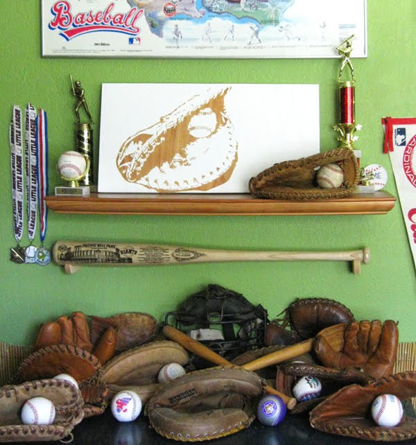 I took a photo of the glove in the driveway, emailed it to the fantastic crew at Modern Bird Studios with Jamie’s choice of colors, and this is what they created. A very special, 12″ x 24″ piece for her bedroom.