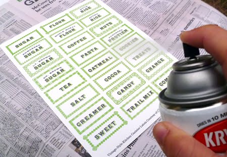 I trimmed out the labels I wanted to use and one by one went about applying them to my canisters.