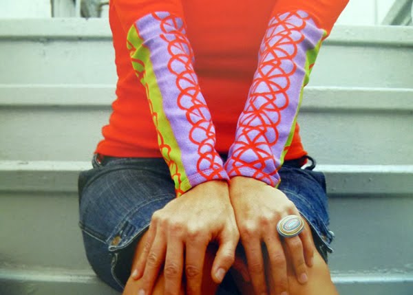 While shopping her space, I noticed a book on her table. A sneak copy of her amazing new book, (released only yesterday!) called Design Your Own Tees, Techniques & Inspiration to Stitch, Stamp, Stencil and Silk-Screen Your Very Own T-shirts.