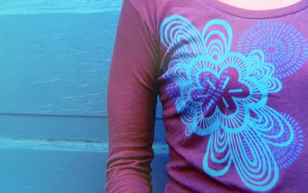 Printing often goes awry. I can’t tell you how many times I’ve discovered that an “accident” is a lot more interesting than what I’d planned. Maybe you can salvage an imperfect print by printing another image on top. And of course, the beauty of a handmade tee lies in its imperfections.